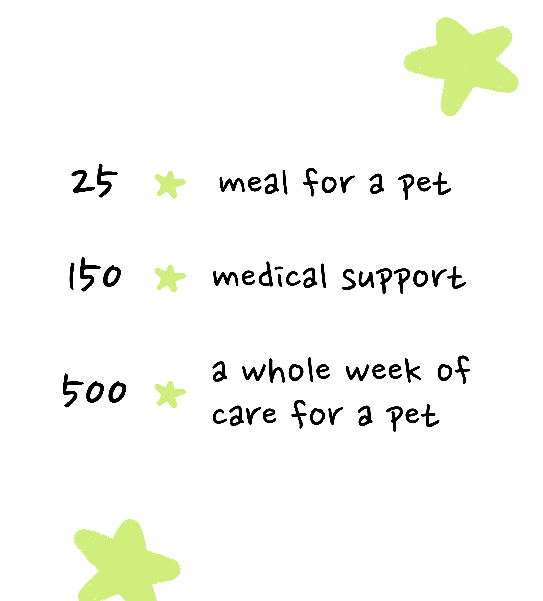 We support Patron Pet Center. Every Star you donate can become a bowl of food or vital medical care for a pet. At the end of the year, all collected Stars will be converted into real support - from food supplies to financial aid for animals.